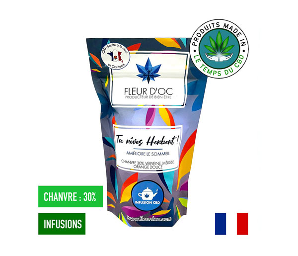 Les ingrédients : Chanvre 30%, Verveine, Mélisse, Orange douce